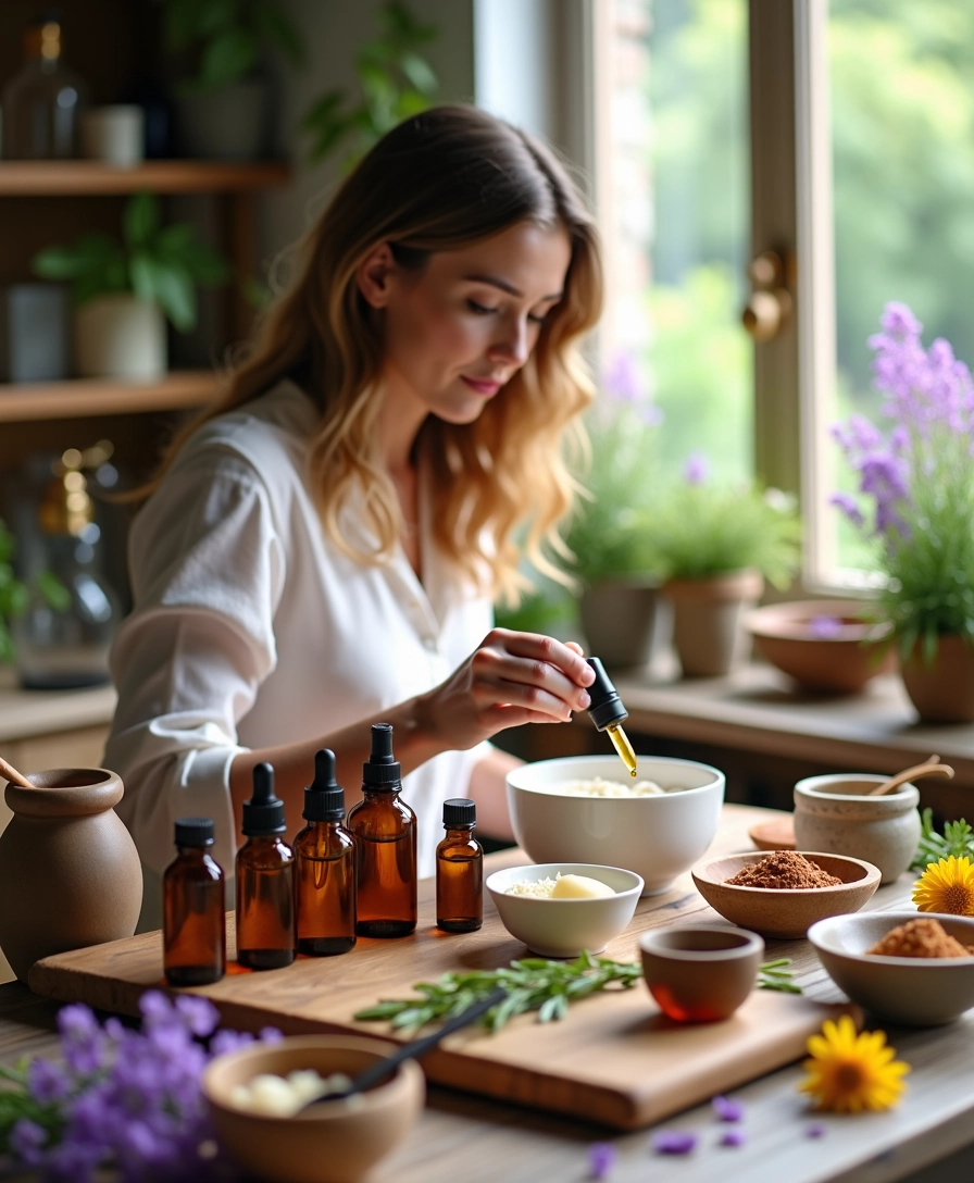 Les huiles essentielles sont de plus en plus utilisées en cosmétique naturelle, apportant leurs propriétés spécifiques aux soins de la peau et des cheveux. En cosmétique, les huiles essentielles peuvent être incorporées dans diverses formulations : crèmes, lotions, sérums, masques, etc. Elles apportent non seulement leurs bienfaits thérapeutiques mais aussi leurs fragrances naturelles, remplaçant avantageusement les parfums de synthèse. Parmi les huiles essentielles les plus utilisées en cosmétique, on trouve :